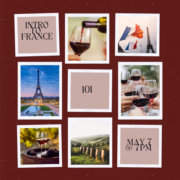 Intro to France is a friendly, no-pressure introduction to how French wine actually works. Instead of memorizing labels or decoding complicated appellations, this class focuses on the big picture: why France is so influential, how its regions differ, and how to taste French wine with confidence.